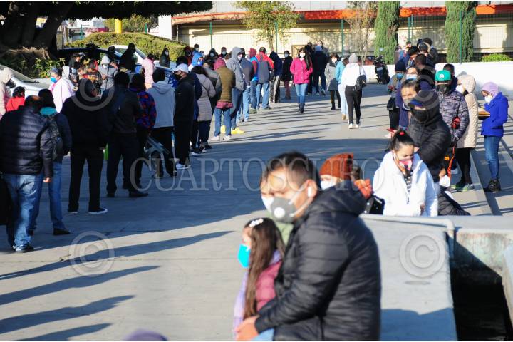 Fila para realizarse la prueba Covid-19 en la Alcaldía Venustiano Carranza.