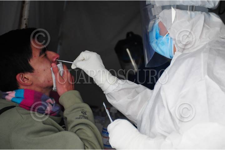 Decenas de personas esperan su turno para realizarse la prueba Covid.