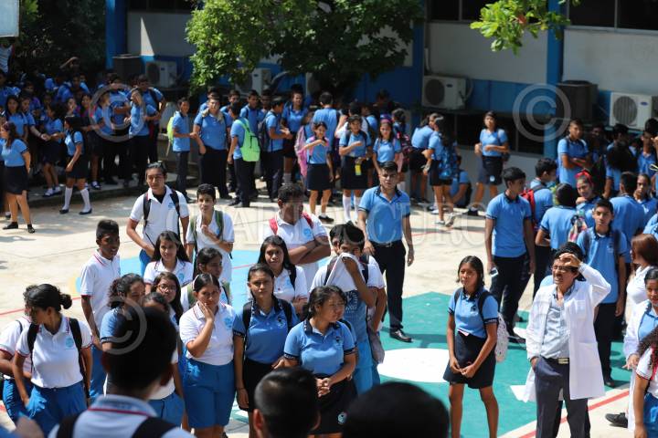 ACAPULCO, GUERRERO, 19SEPTIEMBRE2018.- Esta mañana a las 11:50 se registro un temblor de 4.6 grados, alumnos de la escuela del Centro de Estudios Tecnológicos del Mar en Acapulco, ubicada en la carretera Pie de la cuesta Colonia Jardín, salieron corriendo al área de evacuación donde el director de la escuela les pedía calma. FOTO: BERNANDINO HERNÁNDEZ /CUARTOSCURO.COM