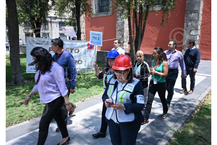 CIUDAD DE MÉXICO, 29ABRIL2025.- Al interior de Palacio Nacional trabajadores, representantes de los medios de comunicación, así cómo efectivos del ejército participaron en los ejercicios del Primero Simulacro Nacional.  FOTO: PRESIDENCIA/CUARTOSCURO.COM