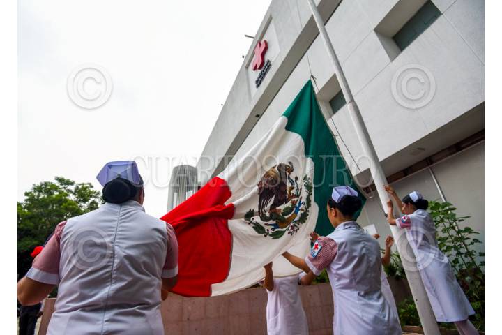 CIUDAD DE MÉXICO, 19SEPTIEMBRE2025.- Ceremonia de izamiento de bandera en memoria de víctimas de los sismos 1985 y 2017 realizada en la plancha del zócalo. FOTO: PRESIDENCIA/CUARTOSCURO.COM