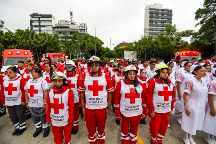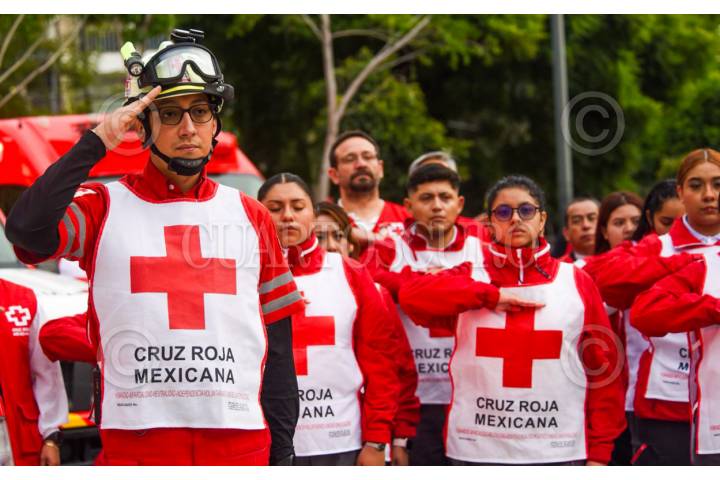 CIUDAD DE MÉXICO. 19SEPTIEMBRE2025.- Ceremonia conmemorativa a los sismos de hace 40 años y 8 que azotaron a la Ciudad de México. Evento en la explanada de la Cruz Roja en la colonia Polanco. FOTO: CUARTOSCURO.COM