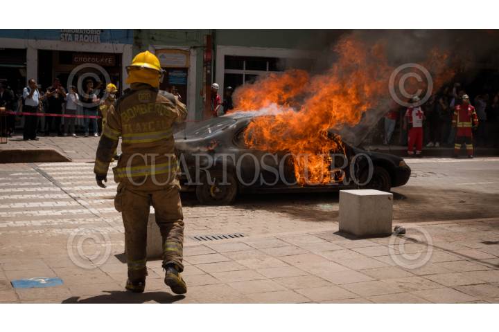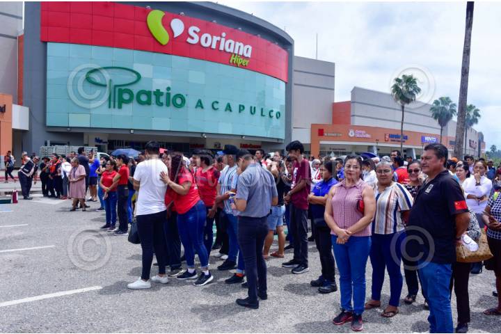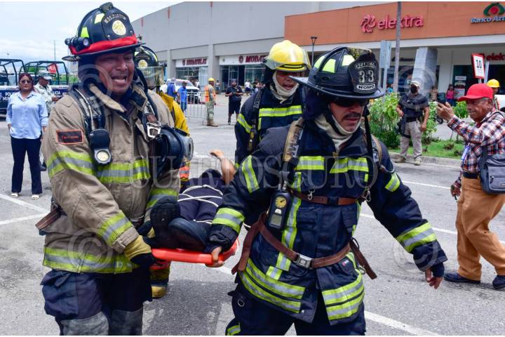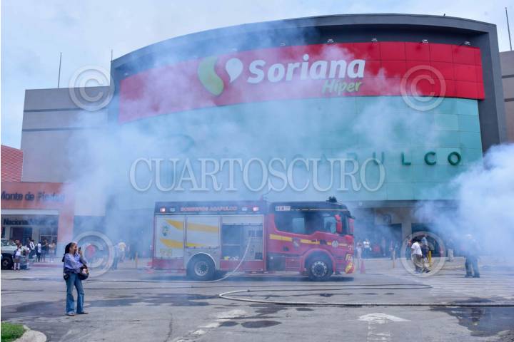 ACAPULCO, GUERRERO, 19SEPTIEMBRE2025.- El cuerpo de Bomberos de Acapulco realizó un ensayo de incendio durante el Simulacro Nacional de Protección Civil por sismo de 8.1 grados, en la Plaza Patio en Acapulco. Este ejercicio conmemora el sismo del 19 de septiembre de 1985, en donde miles de personas perdieron la vida en la Ciudad de México.  FOTO: CARLOS CARBAJAL/CUARTOSCURO.COM