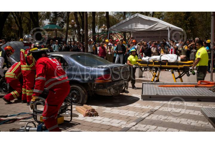 TLAXCALA, TLAXCALA, 19SEPTIEMBRE2025.- Elementos del Heroico Cuerpo de Bomberos, Ejército Mexicano, Guardia Nacional, Protección Civil y Cruz Roja participaron en el primer cuadro de la capital Tlaxcalteca en el Simulacro Nacional 2025. El ejercicio se llevó a cabo con la hipótesis de un sismo de magnitud 8.1 y se realizó simultáneamente en todo el país. Además, se efectuó una prueba de alertamiento en todos los celulares para evaluar la capacidad de respuesta ante emergencias. FOTO: ALAIN HERNÁNDEZ/CUARTOSCURO.COM