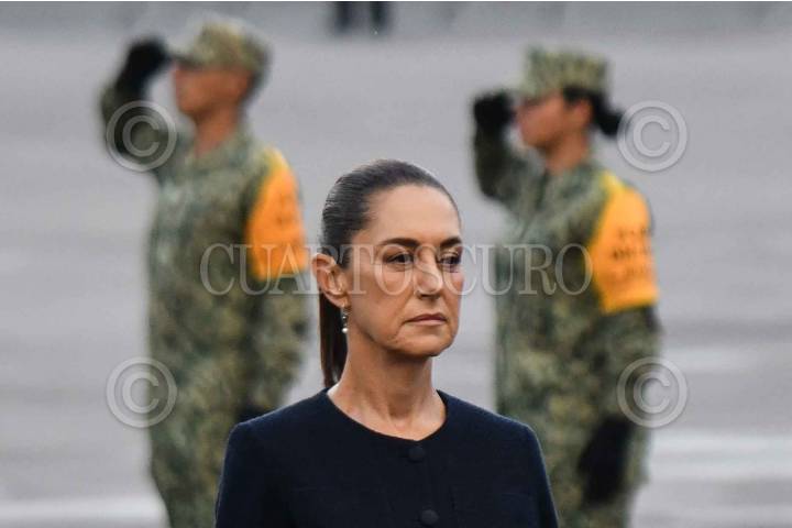 CIUDAD DE MÉXICO, 19SEPTIEMBRE2024.- Claudia Sheinbaum, presidenta electa de México, durante la ceremonia de izamiento de bandera a media asta en memoria de las víctimas de los sismos de 1985 y 2017, realizada en el zócalo capitalino. FOTO: MARIO JASSO/CUARTOSCURO.COM