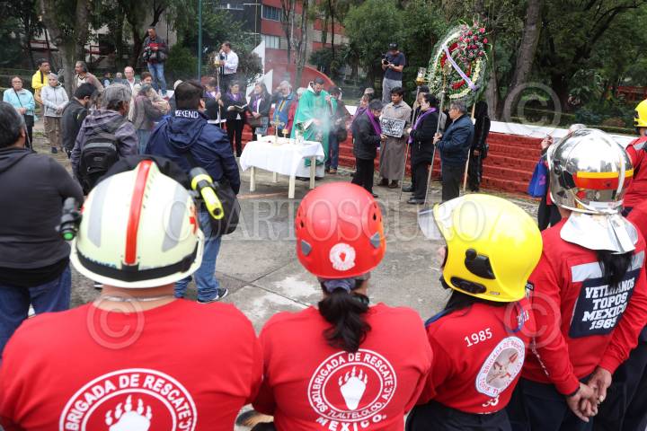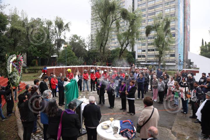 CIUDAD DE MÉXICO, 19SEPTIEMBRE2024. Misa en honor a víctimas de los sismos de 1985 y 2017, donde vecinos recordaron a fallecidos del Edificio Nuevo León en la Unidad Habitacional Tlatelolco. FOTO: EDGAR NEGRETE LIRA/CUARTOSCURO.COM