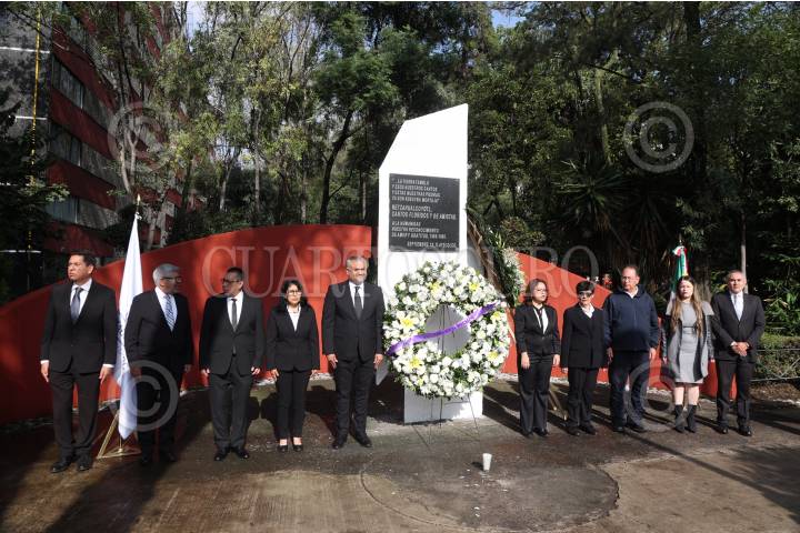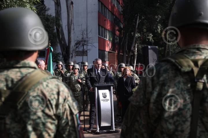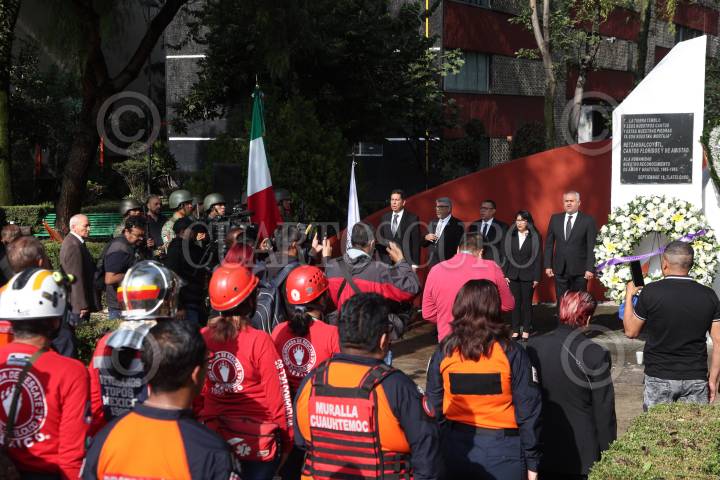 CIUDAD DE MÉXICO, 19SEPTIEMBRE2024. El alcalde de Cuauhtémoc, Raúl Ortega Rodríguez junto a miembros de su gabinete durante la ceremonia de conmemoración de los sismos de 1985 y 2017, en la “Huella del Nuevo León” ubicada en la Unidad Habitacional Tlatelolco. FOTO: EDGAR NEGRETE LIRA/CUARTOSCURO.COM FOTO: EDGAR NEGRETE LIRA/CUARTOSCURO.COM