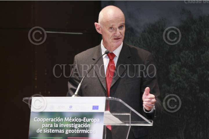 CIUDAD DE MÉXICO, 17NOVIEMBRE2016.- Andrew Stanley, embajador de la Unión Europea, en la conferencia de prensa en donde dio detalles de la cooperación entre México y Europa, para la investigación de sistemas geotérmicos. FOTO: CUARTOSCURO.COM
