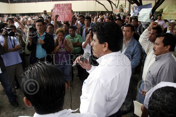 VILLAHERMOSA, TABASCO, 21ENERO2008.- Diego Anímas Delgado; secretario general del SITET dirige unas palabras al magisterio dentro de la SEP estatal. FOTO: MARCO POLO GUZMÁN HERNÁNDEZ/CUARTOSCURO.COM