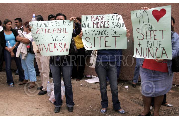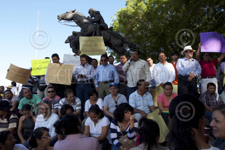 VILLAHERMOSA, TABASCO, 21ENERO2008.- Profesores sindicalizados del SITET (Sindicato Independiente de Trabajadores del Estado de Tabasco) se manifiestan tomando las instalaciones de la Secretaría de Educación Pública en el estado exigiendo demandas incumplidas. FOTO: MARCO POLO GUZMÁN HERNÁNDEZ/CUARTOSCURO.COM