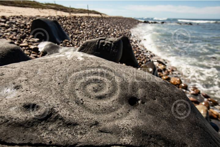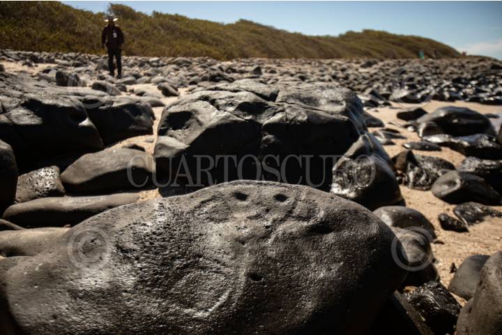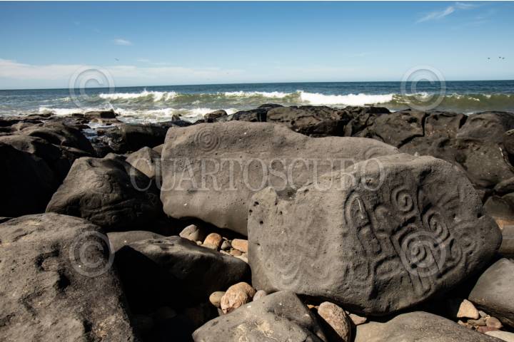 SAN IGNACIO, SINALOA, 14ABRIL2024.- Las Labradas, sitio arqueológico que se localiza en la franja costera del municipio, en el sur del estado de Sinaloa. El nombre de la zona deriva de la cantidad de petrograbados que existen entre la superficie de la arena y parte del mar. Testimonio alucinante de los antiguos pobladores. Este sitio es diferente a todos no sólo porque se encuentra sobre la playa, sino porque atesora más de 700 grabados rupestres realizados sobre rocas volcánicas con motivos de plantas, flores, animales y figuras geométricas, que el mar no ha dañado. FOTO: ADOLFO VLADIMIR /CUARTOSCURO.COM