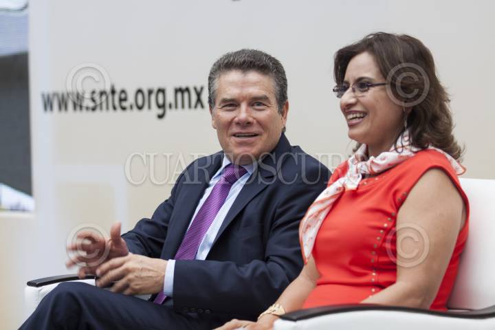 MÉXICO, D.F., 11JUNIO2013.- Juan Díaz de la Torre, presidente nacional del Sindicato Nacional de Trabajadores de la Educación y Luiz Mireya Franco, coordinadora del Colegiado de la Comunicación del SNTE, durante la presentación del nuevo sitio web del SNTE que se realizo en el Centro Cultural del México Contemporáneo. FOTO: RODOLFO ANGULO /CUARTOSCURO.COM