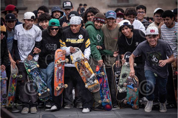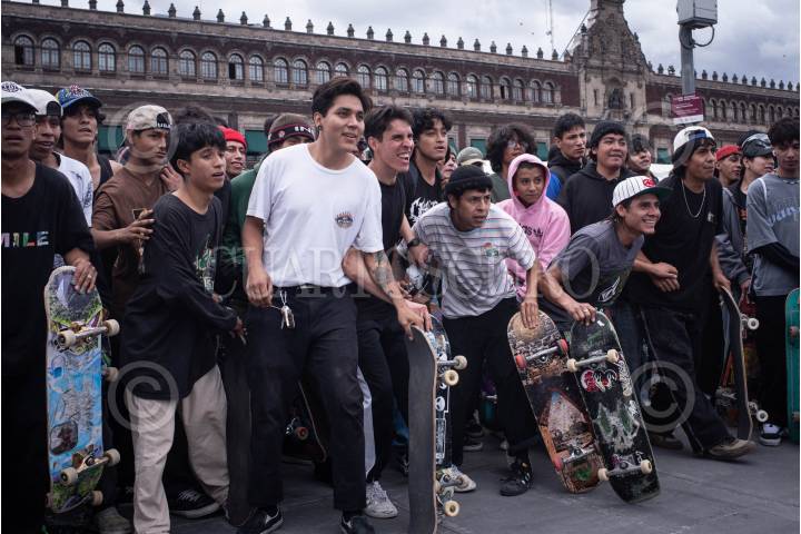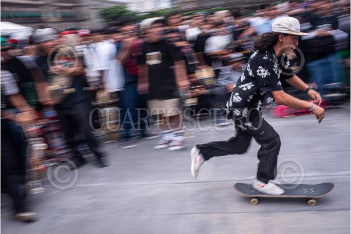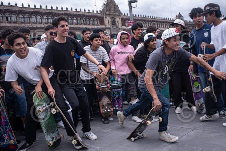 CIUDAD DE MÉXICO, 21JUNIO2024.- Jóvenes "skaters" se reunieron en la Plaza del Zócalo para patinar y convivir. Lo anterior en el marco de Día Internacional del Skate. FOTO: PEDRO ANZA/CUARTOSCURO.COM