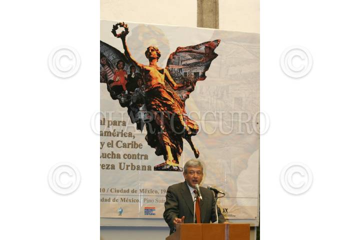 México, D. F. 19 Agosto 2004.- Andrés Manuel López Obrador, jefe del gobierno capitalino, durante su participación en la inauguración del segundo Taller Regional para Centroamérica, México y el Caribe sobre: Lucha contra la pobreza urbana. FOTO: Nelly Salas/CUARTOSCURO.COM