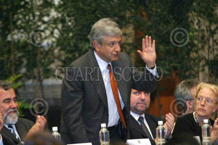 México, D. F. 19 Agosto 2004.- Andrés Manuel López Obrador, jefe del gobierno capitalino, saluda a los asistentes de inauguración del segundo Taller Regional para Centroamérica, México y el Caribe sobre: Lucha contra la pobreza urbana. FOTO: Nelly Salas/CUARTOSCURO.COM