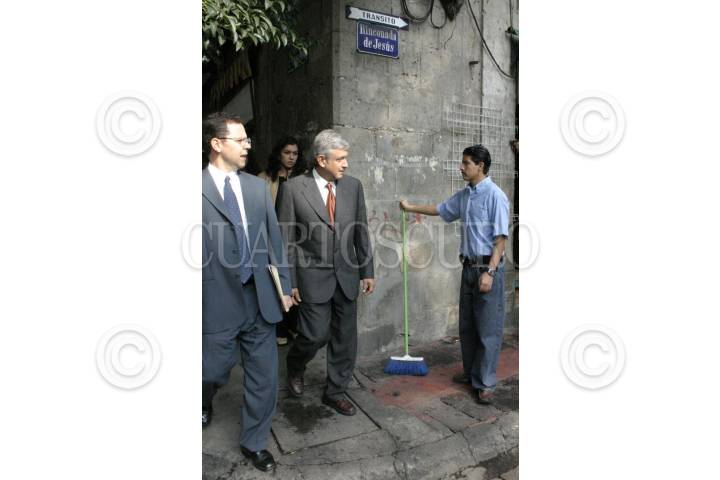 México, D. F. 19 Agosto 2004.- Andrés Manuel López Obrador, jefe del gobierno capitalino, caminó por las calles del centro histórico para dirijirse al museo de la ciudad de México, donde inauguró el segundo Taller Regional para Centroamérica, México y el Caribe sobre: Lucha contra la pobreza urbana. FOTO: Nelly Salas/CUARTOSCURO.COM
