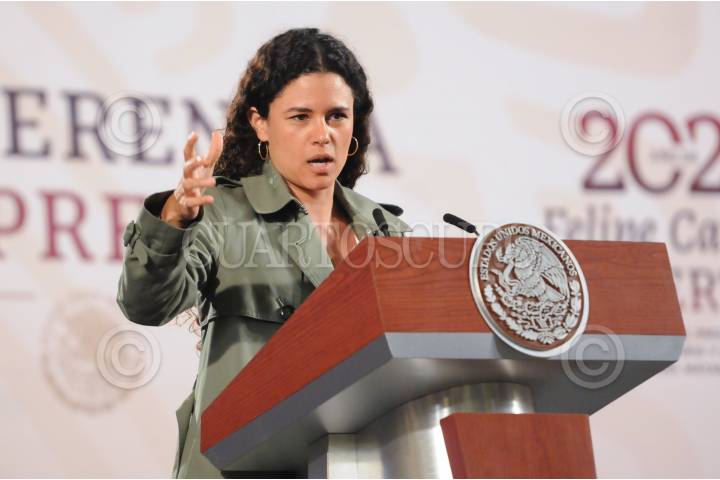 CIUDAD DE MÉXICO, 24JULIO2024. - Luisa María Alcalde, secretaria de Gobernación, participa en la conferencia mañanera de este miércoles. FOTO: DANIEL AUGUSTO /CUARTOSCURO.COM
