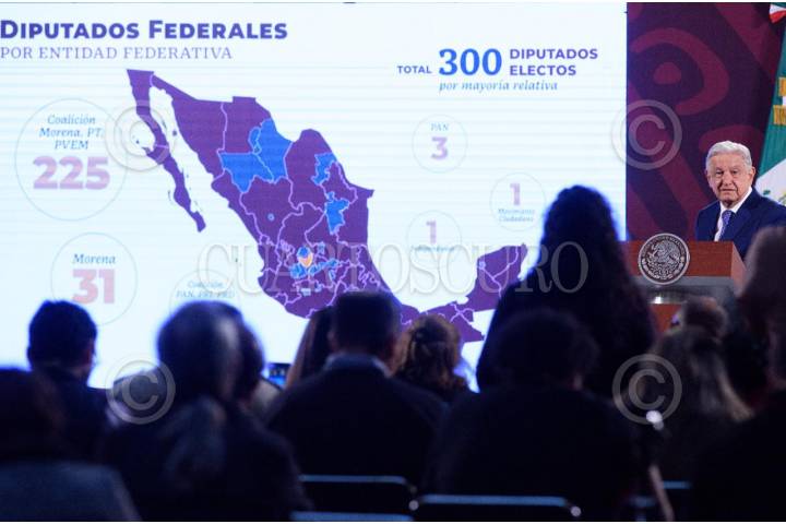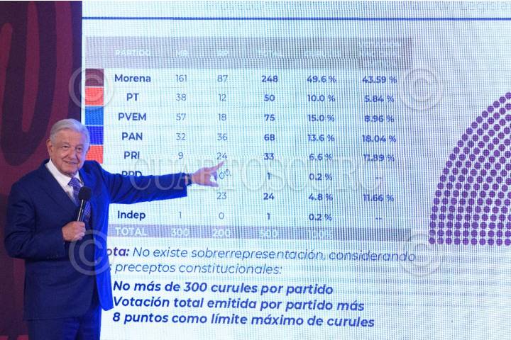 CIUDAD DE MÉXICO, 21AGOSTO2024.- Andrés Manuel López Obrador, presidente de México, durante su conferencia de prensa matutina habló sobre la representación prevista de legisladores para la LXV Legislatura, luego de que el Instituto Nacional Electoral (INE) anunciará que se perfila dar mayoría calificada a Morena y aliados en la Cámara de Diputados. FOTO: PRESIDENCIA/CUARTOSCURO.COM