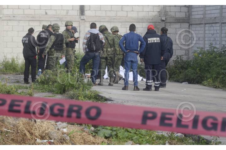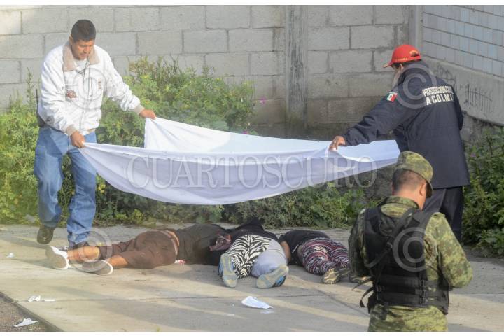 ACOLMAN, EDOMEX, 14AGOSTO2014.- Cuatro cuerpos fueron encontrados sobre las calles Constitución y Venustiano Carranza, en colonia Emiliano Zapata, frente a la termoeléctrica. El saldo fue de 3 personas asesinadas y un hombre que sobrevivió, quien fue llevado al Hospital de las Américas. Elementos del ejercito y policía ministerial acordonaron la escena del crimen para las investigaciones correspondientes. FOTO: LUIS CARBAYO /CUARTOSCURO.COM