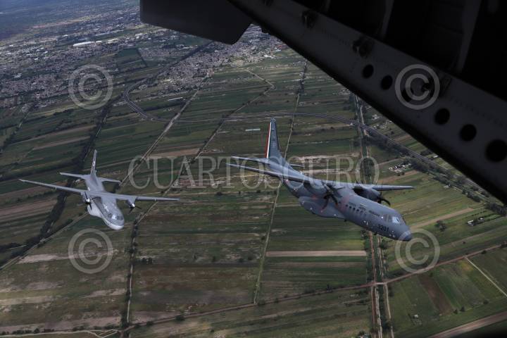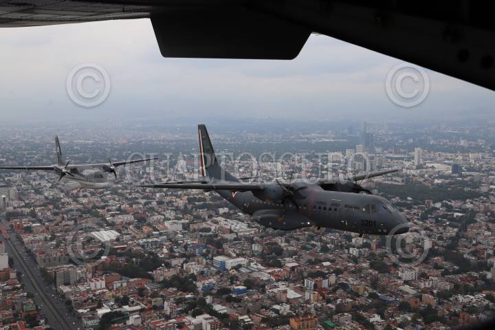 CIUDAD DE MÉXICO, 16SEPTIEMBRE2023.- Sobrevuelo por locales del centro histórico durante el militar por el 213 aniversario del Inicio de la Independencia Nacional. FOTO: EDGAR NEGRETE LIRA/CUARTOSCURO.COM