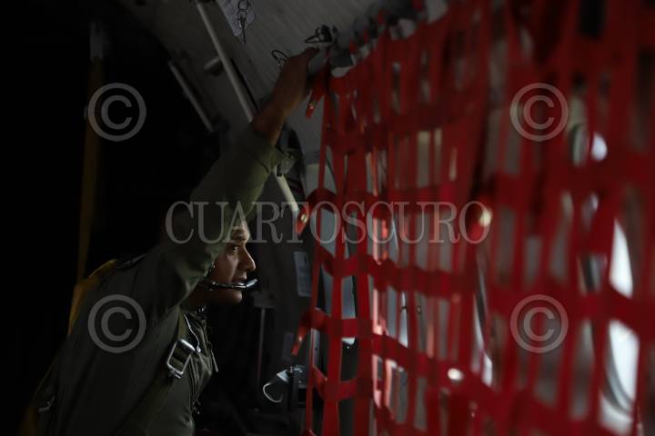 CIUDAD DE MÉXICO, 16SEPTIEMBRE2023.- Aspecto del interior de un UH-60 Black Hawk que participó en el desfile militar por el 213 aniversario del Inicio de la Independencia Nacional, despegando de la Base Aérea Militar Nº 1 Santa Lucia. FOTO: EDGAR NEGRETE LIRA/CUARTOSCURO.COM