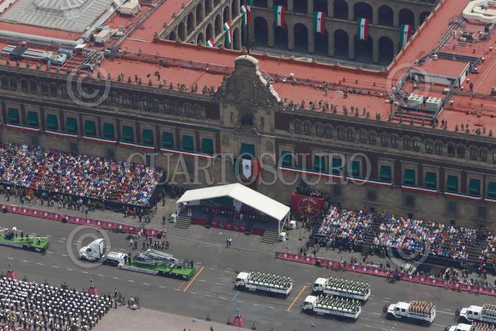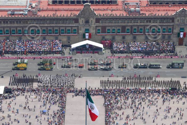 CIUDAD DE MÉXICO, 16SEPTIEMBRE2023.- Sobrevuelo por la plancha del zócalo durante el militar por el 213 aniversario del Inicio de la Independencia Nacional. FOTO: EDGAR NEGRETE LIRA/CUARTOSCURO.COM