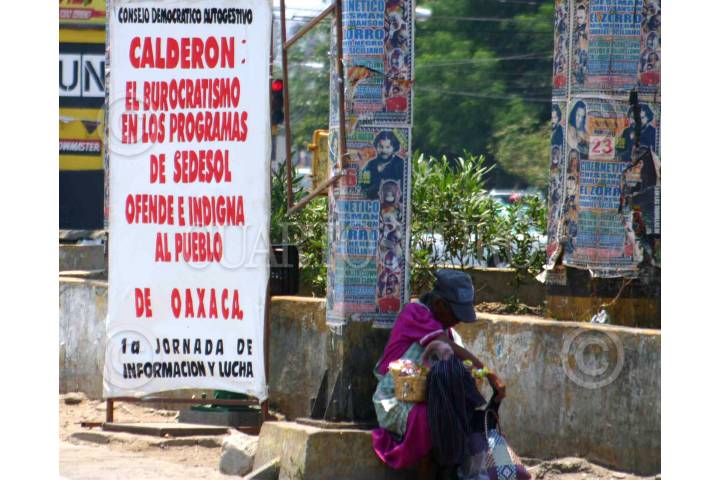 OAXACA , OAXACA 21ABRIL2008.-El nuevo Movimiento de resistencia civil pacifica por el petróleo dio inicio por parte de diputados locales. En el crucero de cinco señores, uno de los mas transitados pueden observarse varios carteles. FOTO: MAX NUÑEZ/CUARTOSCURO.COM.