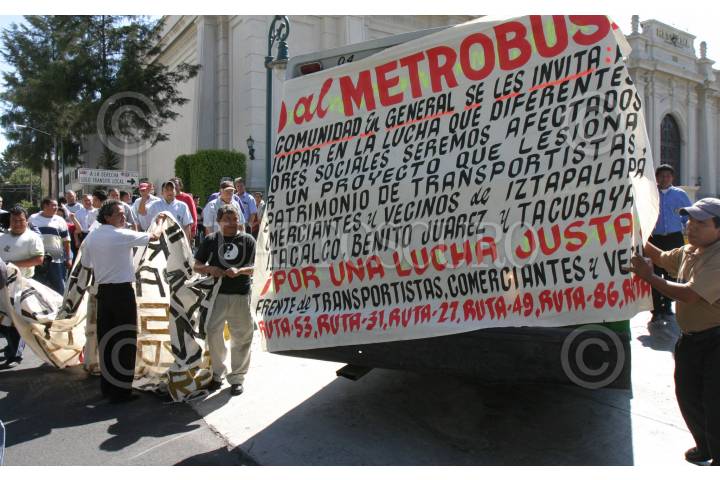 MÉXICO, D.F.; 31ENERO2007.- Choferes de microbuses protestaron contra la construcción de la nueva ruta del metrobus que pasara por el eje 4 sur, se manifestaron en el cruce de Cauhtemoc y Xola; y de ahí al periodico reforma. FOTO:PEDRO MARRUFO/CUARTOSCURO.COM
