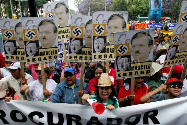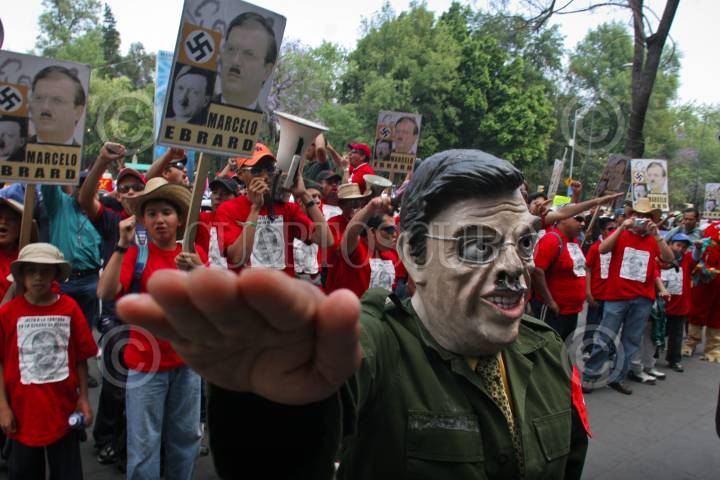MÉXICO, D.F., 13MARZO2009.- Cientos de personas se manifestaron a las afueras de un hotel de la ciudad de México, manifestandose en contra de Marcelo Ebrard jefe de gobierno del D.F. que asistía a un evento en ese lugar, los manifestantes acusaron al mandatario de torturador y facista. FOTO: RICARDO CASTELAN/CUARTOSCURO.COM
