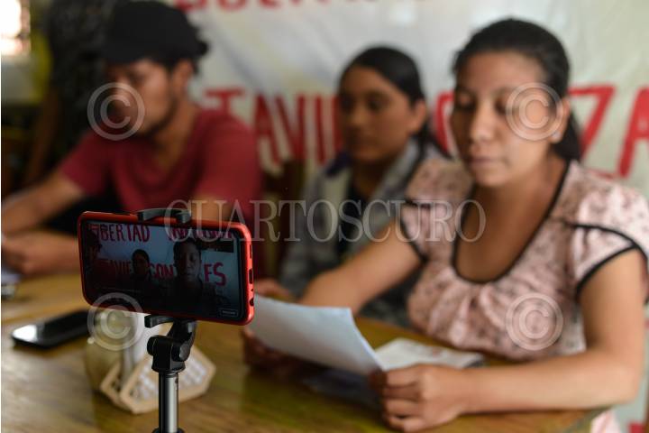 SAN CRISTOBAL DE LAS CASAS, CHIAPAS, 09OCTUBRE2019.- En conferencia de prensa integrantes del Frente Nacional de lucha por el Socialismo, informó sobre el acoso del cual aun son víctimas en las comunidades pertenecientes al movimiento. Y exigen la pronta liberación de los presos políticos Javier Gonzalez y Armando Hernandez, quienes continuan presos por crímenes que no cometieron y fueron torturados antes de ser encarcelados por autoridades estatales. FOTO: ISABEL MATEOS /CUARTOSCURO.COM