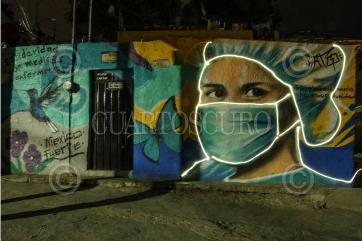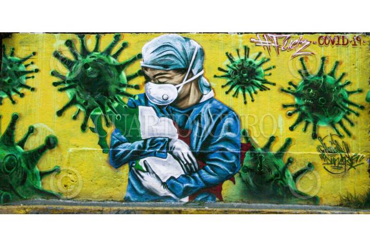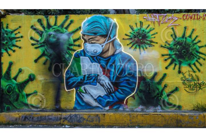 Artistas urbanos de la ciudad, realizan murales en apoyo al personal médico.