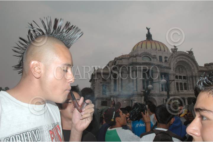 MEXICO, D.F. 07MAYO2005.- Jóvenes asistieron a fumar mariguana al la manifestación que se realizó frente al Palacio de Bellas artes para la despenalización del enervante. FOTO: Iván Stephens/CUARTOSCURO.COM