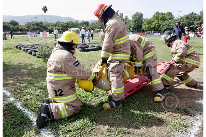 Demostración de los trabajos del Heróico Cuerpo de bomberos de Oaxaca como parte de las actividades por la Semana de Seguridad y Salud en el Trabajo 2022,