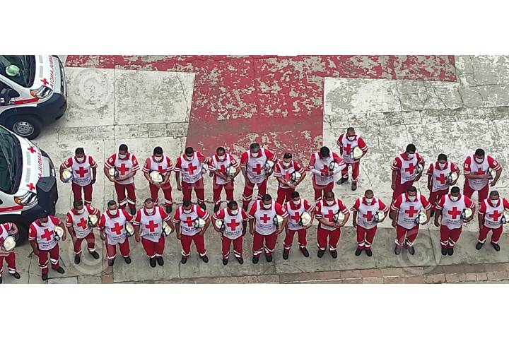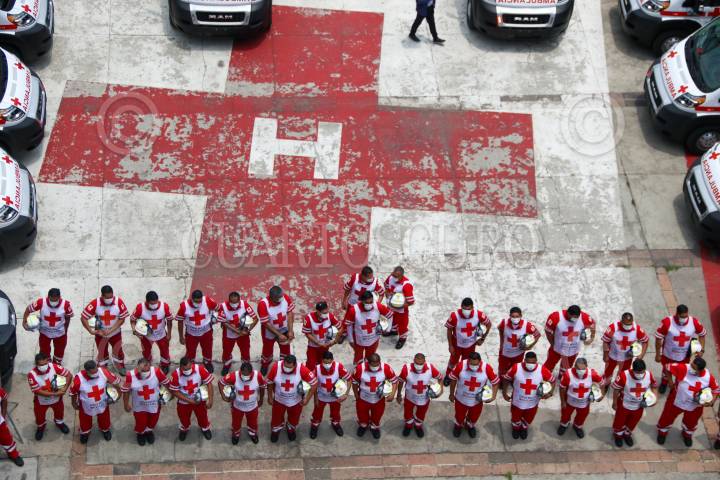 TOLUCA, ESTADO DE MÉXICO, 24JUNIO2025.- Elementos de la Cruz Roja Mexicana se mantuvieron formados durante el simulacro realizado este 24 de junio con motivo del Día Internacional del Socorrista. FOTO: CRISANTA ESPINOSA AGUILAR/CUARTOSCURO.COM