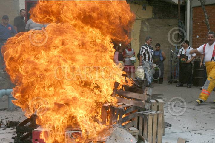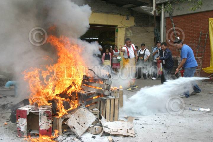 MÉXICO, D.F., 04SEPTIEMBRE2007.- Locatarios del mercado de la Merced tomaron un curso con personal de Protección Civil y Bomberos, sobre el manejo de extintores, para en caso de incendio, controlar más rápido una emergencia. PEDRO MARRUFO/CUARTOSCURO.COM