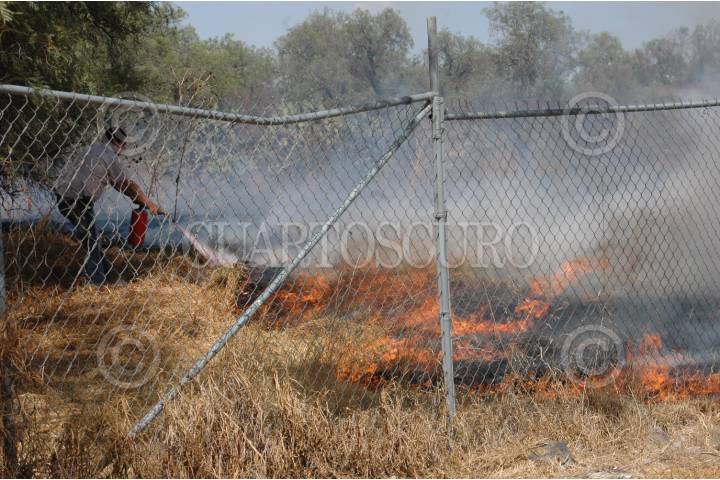 MÉXICO, D.F., 21MARZO2009.- A un costado de los predios del INAH y la zona arqueológica el pasto seco se prendió, para evitar que se extendiera, oportunamente lograron sofocar el fuego. FOTO:MARIO NULO/CUARTOSCURO.COM