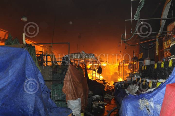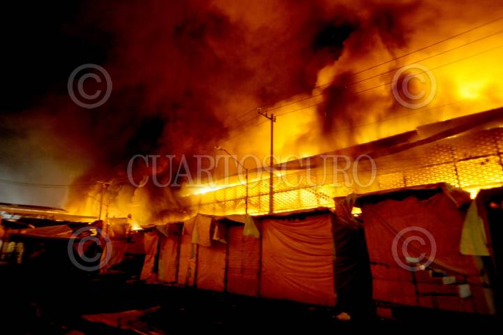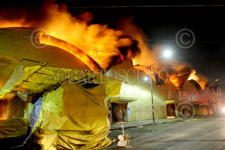 MÉXICO, D.F., 27FEBRERO2013.- Fuerte incendio consumió dos naves del mercado de La Merced, del que se desconocen las causas. Bomberos de todo el Distrito Federal acudieron en apoyo para sofocar esta conflagración que duro mas de 5 horas en ser controlado. FOTO: LUIS CARBAYO /CUARTOSCURO.COM