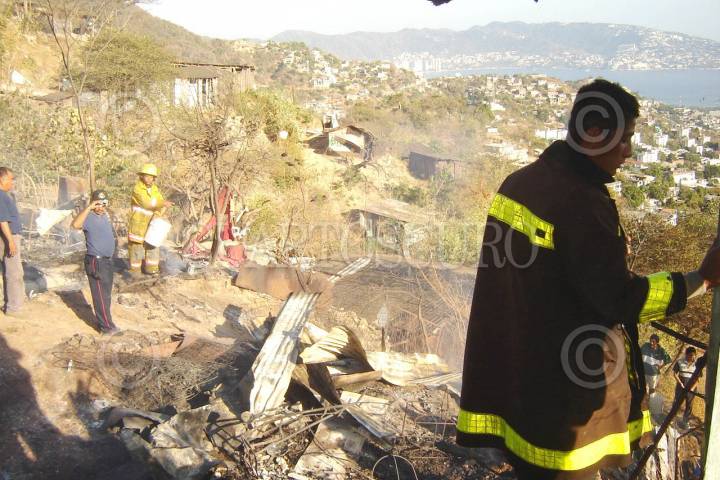 ACAPULCO, GUERRERO, 18MARZO2006. Cuatro viviendas quedaron calcinadas luego de registrarse un incendio en la colonia Maria de la O y no hubo perdidas humanas .Los bomberos tuvieron que utlizar cubetas para sofocar las llamas. FOTO Magdalena Martinez/CUARTOSCURO.COM