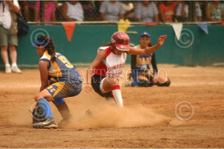 VILLAHERMOSA, TABASCO 15MAYO 2005.- El equipo juvenil femenil de softbol de de Baja California se impuso 12 carreras contra 9 a sus adversarias de Sinaloa, en la grafica la jugadora de Baja California llega safe en el robo de base en tercera. FOTO: Marco Polo Guzmán Hernández/CUARTOSCURO.COM