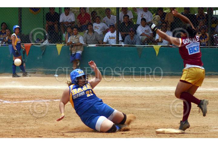 VILLAHERMOSA, TABASCO 15MAYO 2005.- El equipo juvenil femenil de Baja California se impuso 12 carreras contra 9 a sus adversarias de Sinaloa, en la grafica la jugadora de Baja California llega safe en el robo de base en tercera. FOTO: Marco Polo Guzmán Hernández/CUARTOSCURO.COM