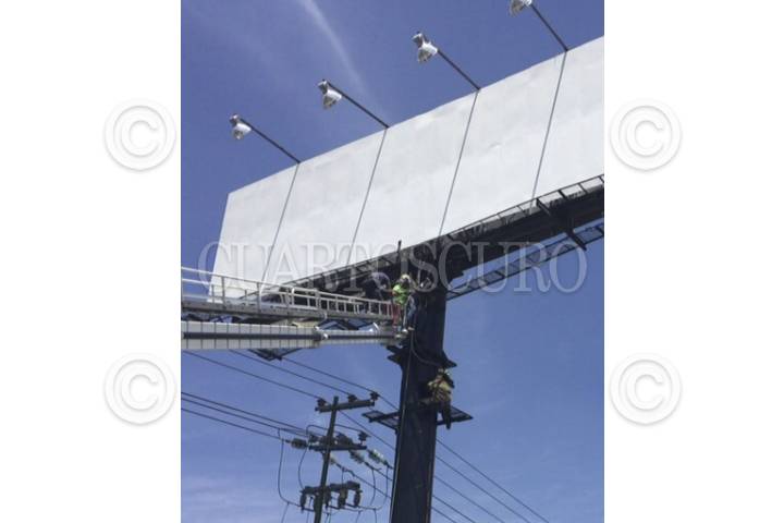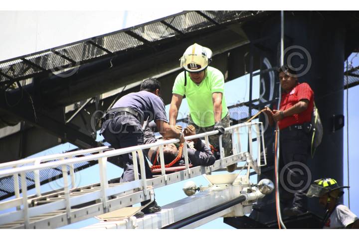 MÉXICO, D.F., 10ABRIL2015.- Saul Galicia Orozco de 34 años, trabajador de la empresa Andamios IG con sede en la colonia Tepalcalpa, quien desde la mañana de este viernes realizaba labores para soldar unas extensiones tubulares y reparaciones en general a un estructura metálica de un anuncio que mide más de 25 metros de altura en el kilómetro 38 de la México Querétaro con dirección al norte. FOTO: ARMANDO MONROY /CUARTOSCURO.COM
