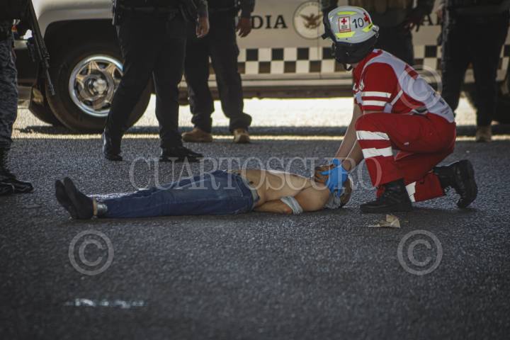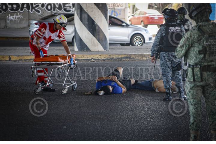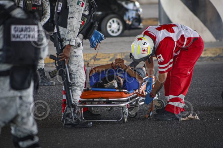 CULIACÁN, SINALOA, 19MAYO2025.- Tres hombres fueron encontrados esposados, encintados y con impactos de balas con rifles de alto poder bajo el puente de La Costerita, en las inmediaciones del fraccionamiento Villa Bonita, al sur de Culiacán. El ataque ocurrió la mañana de este lunes en el cruce de la avenida Álvaro Obregón y el Libramiento Benito Juárez, generando conmoción entre los automovilistas que presenciaron el hecho. Testigos relatan que los agresores descendieron de dos vehículo, obligaron a las víctimas a bajar y les dispararon dándolos por muertos. Minutos después, autoridades de diversas corporaciones acudieron al sitio, aseguraron la zona e iniciaron las investigaciones. Se ha confirmado que los tres contaban con ficha de búsqueda, el estado de salud se encuentra bajo pronóstico reservado. FOTO: JOSÉ BETANZOS ZÁRATE/CUARTOSCURO.COM