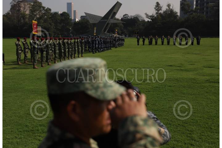 CIUDAD DE MÉXICO, 05SEPTIEMBRE2025.- Militares permanecen en posición de firmes durante la ceremonia con motivo del Día del Estado Mayor celebrada en Campo Marte. FOTO: GALO CAÑAS/CUARTOSCURO.COM