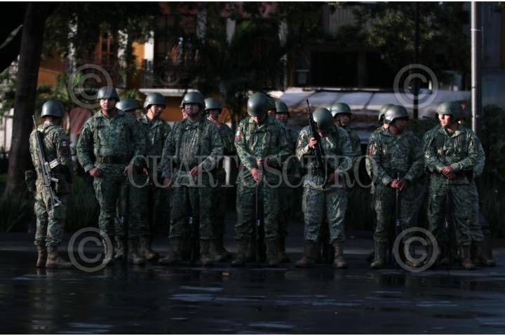 CUERNAVACA, MORELOS, 08AGOSTO2025.- Un grupo de soldados del Ejercito antes de la Ceremonia Cívica y Develación del Monumento del General Emiliano Zapata Salazar en la Plaza de Armas de la capital, encabezada por la gobernadora Margarita González Saravia y todo su gabinete, además de los representantes de los poderes legislativo y judicial. FOTO: MARGARITO PÉREZ RETANA/CUARTOSCURO.COM