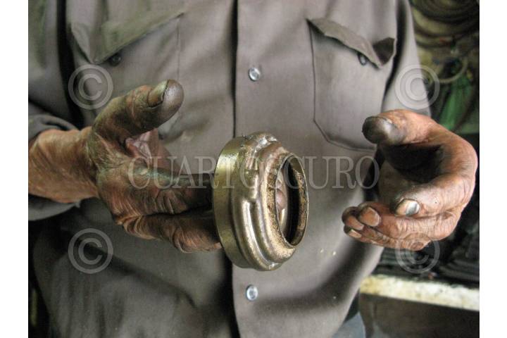 ZACATECAS, ZACATECAS, 22ABRIL2009.- Desde hace 60 años en el numero 350 de la calle 1o de Mayo, colonia Centro de ésta ciudad, se encuentra el taller de torno y soldadura de Don Francisco Romero Escobedo, que con casi 50 años de cazado, el comenta que desde hace casi diez años la afluencia de clientes a disminuido progresivamente pero nunca antes como ahora ante la crisis económica. "Las diferentes constructoras que solicitaban mis servicios han desaparecido", y que junto con los diferentes impuestos requeridos por el gobierno le es imposible poder mantener por tanto tiempo y sin ganancias un negocio que le heredó su padre. FOTO: MISAEL VALTIERRA/CUARTOSCURO.COM