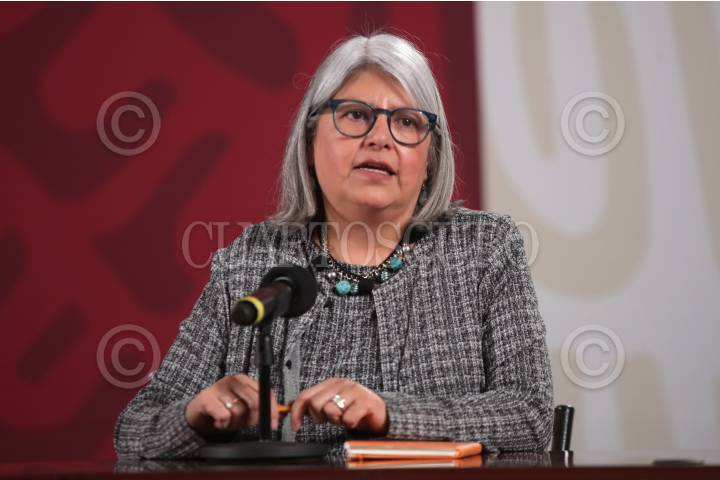 Graciela Márquez Colín, secretaria de Economía, durante la conferencia de créditos