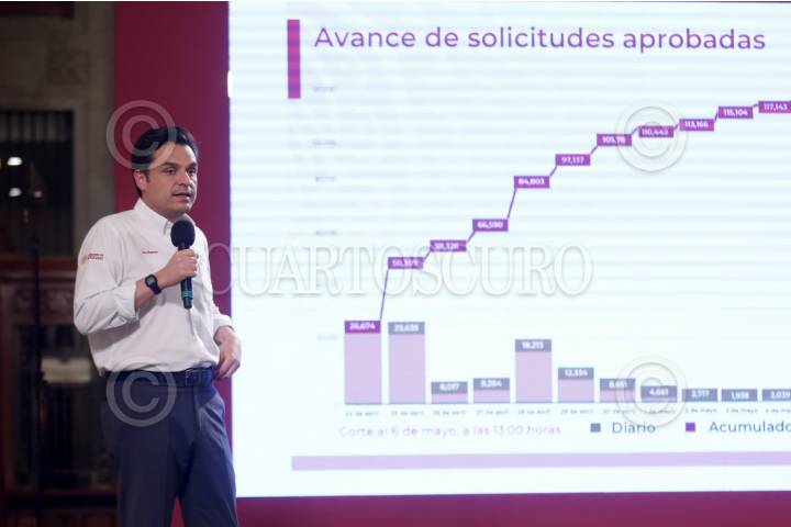 Zoe Robledo, director del IMSS, durante la conferencia de créditos
