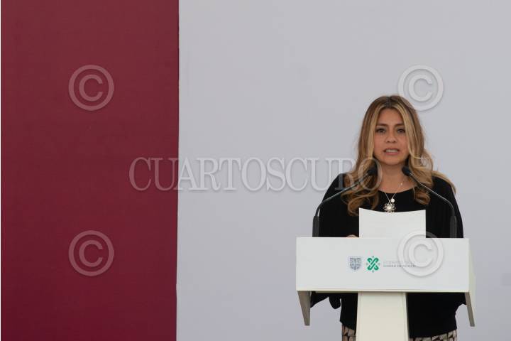 Soledad Aragón Martínez, secretaria del Trabajo y Fomento al Empleo de la capital, durante la inauguración de la Feria Nacional de Empleo 2021.
