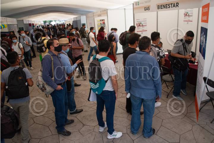 Personas buscan una oportunidad de trabajo en Gas Bienestar, en la Feria Nacional de Empleo 2021 en la alcaldía Iztacalco.