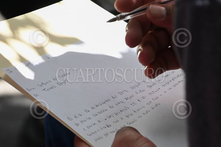 Un migrantes escribe su carta de motivos para recibir asilo en México.